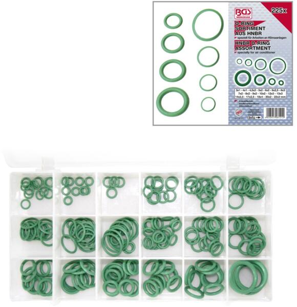 BGS Technic O" gyűrű készlet légkondihoz "zöld" HNBR 225 részes - klímatech. BGS (9-8121)