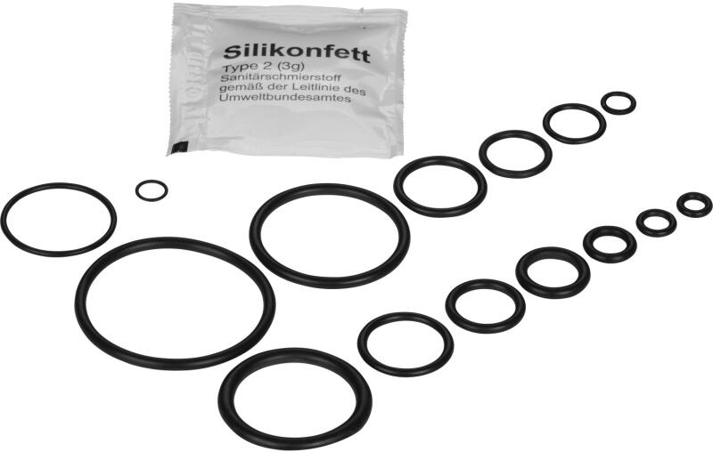 A speciális O-gyűrűkből álló, csaptelepzsírt is tartalmazó OBI tömítéskészlet tömítésre szolgál a fürdőszobában, WC-ben és a konyhában. Mosdók vagy fürdőkádak csaptelepeihez használatos. A gyűrű alakú tömítőelemek magas nyomáson is használhatók. A tömítések fekete színűek. A csaptelepzsírt tartalmazó tubus kenésre szolgál. Tartalom 1 tubus csaptelepzsír (3 g) 2 db O-gyűrű: 5 mm x 2 mm (belső x zsinórvastagság) 2 db O-gyűrű: 6 mm x 1,5 mm (belső x zsinórvastagság) 2 db O-gyűrű: 6,2 mm x 1 mm (belső x zsinórvastagság) 2 db O-gyűrű: 7 mm x 1,5 mm (belső x zsinórvastagság) 2 x O-gyűrű: 7,8 mm x 2,5 mm (belső x zsinórvastagság) 2 db O-gyűrű: 11 mm x 2,5 mm (belső x zsinórvastagság) 2 db O-gyűrű: 12 mm x 2 mm (belső x zsinórvastagság) 2 db O-gyűrű: 12 mm x 3 mm (belső x zsinórvastagság) 2 db O-gyűrű: 18,72 mm x 2,62 mm (belső x zsinórvastagság) 2 db O-gyűrű: 25 mm x 1,6 mm (belső x zsinórvastagság) 2 db O-gyűrű: 28 mm x 4 mm (belső x zsinórvastagság) 2 db O-gyűrű: 33 mm x 3 mm (belső x zsinórvastagság) 2 db O-gyűrű: 42 mm x 3 mm (belső x zsinórvastagság) 4 db O-gyűrű: 3/8" x 2,5 mm (belső x zsinórvastagság) 4 db O-gyűrű: 8 mm x 2,5 mm (belső x zsinórvastagság) 4 db O-gyűrű: 9 mm x 3 mm (belső x zsinórvastagság) 4 db O-gyűrű: 13,6 mm db 2,7 mm (belső x zsinórvastagság) 4 db O-gyűrű: 13,94 mm x 2,62 mm (belső x zsinórvastagság) 4 db O-gyűrű: 14 mm x 2 mm 4 db O-gyűrű: 17,5 mm x 2 mm 4 db O-gyűrű: 18 mm x 2,5 mm