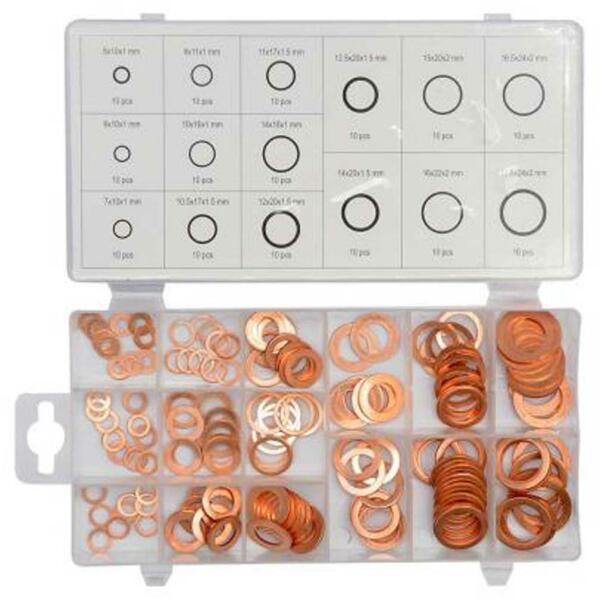 TOYA tömítõ alátét készlet, 150db-os, réz, szortírozó dobozban (YT-06871)