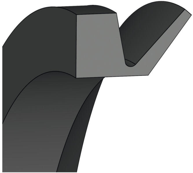 A V-gyűrűk axiális tömítések, amelyek ajaktömítésként, de szórógyűrűként is szolgálnak. Por, kosz, zsír, olaj és freccsenő víz elleni külső tömítésként használják őket. A merevítő test, a csukló és a tömítő ajak képezik a V-gyűrű tipikus szerkezetét. A VA kivitel egy standard V-gyűrű. Képünk illusztráció.